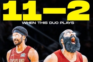 两人共同出战的比赛,骑士取得了11胜2负的战绩。