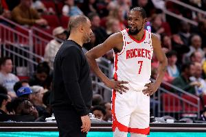赛前,火箭主帅乌度卡接受了记者采访。当被问及杜兰特本赛季出战总时长联盟第二(仅次于阿门),而在负荷管理的时代,这说明了什么时,他说道:“这说明他热爱比赛,不想错过任何一场比赛,也不想缺阵。”