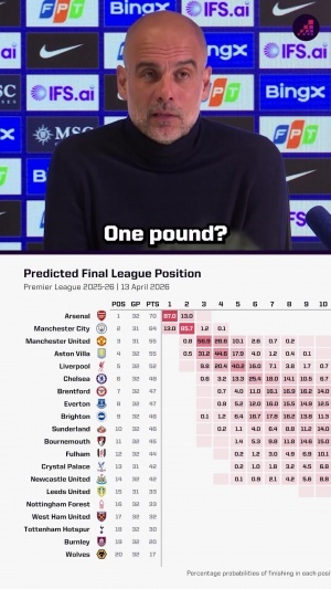 体育资讯04月13日讯 英超第32轮,曼城3-0大胜切尔西,opta更新了英超夺冠概率,依旧看好阿森纳,夺冠概率为87%。
